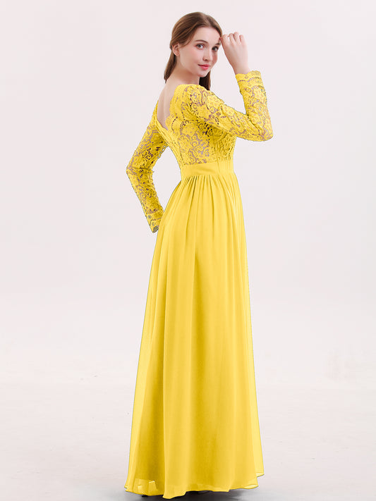 Babaroni AlinaAlina Escote En V Encaje Y Gasa Vestido Con Largas Mangas Caléndula Tallas Grandes