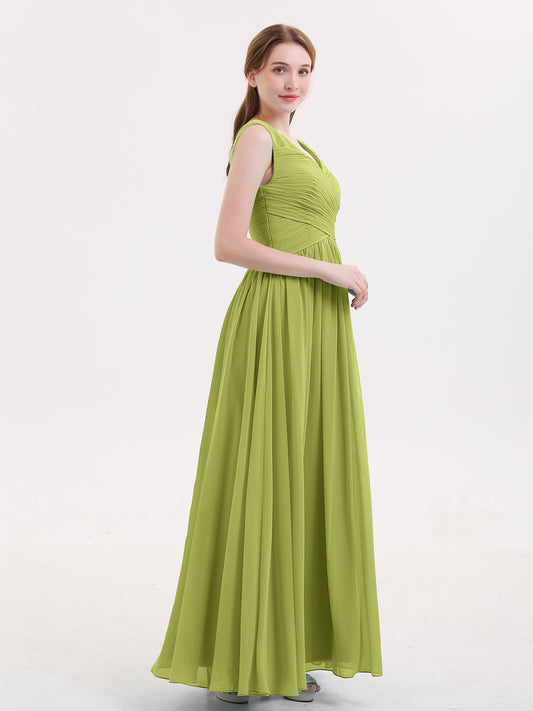 Babaroni EasterEaster Escote En V Maxi Gasa Vestidos Con Cremallera En Espalda Verde Lima Tallas Grandes