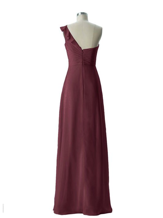 Babaroni EdenEden Un Volante Hombro Largo Vestido De Dama De Honor Cabernet