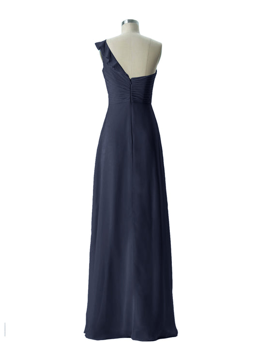 Babaroni EdenEden Un Volante Hombro Largo Vestido De Dama De Honor Azul Marino