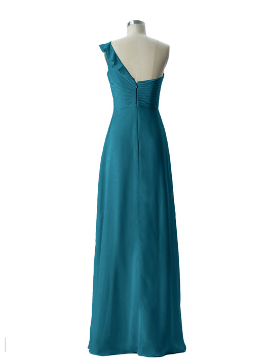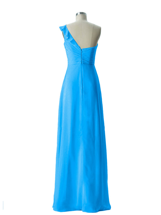 Babaroni EdenEden Un Volante Hombro Largo Vestido De Dama De Honor Azul Océano