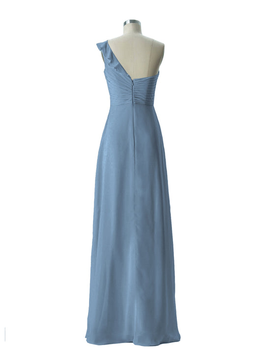 Babaroni EdenEden Un Volante Hombro Largo Vestido De Dama De Honor Azul Polvoriento