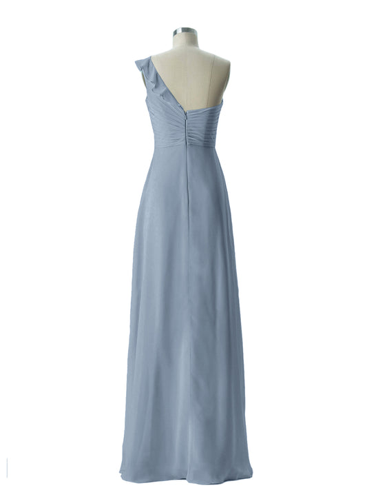 Babaroni EdenEden Un Volante Hombro Largo Vestido De Dama De Honor Azul Pizarra