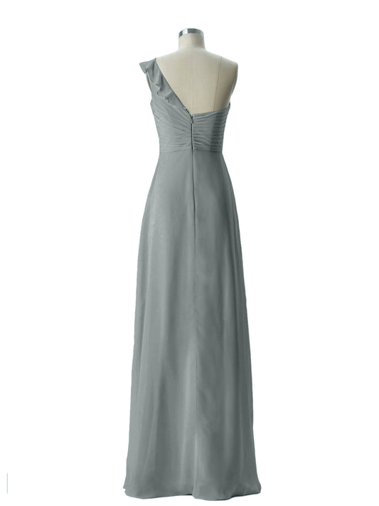 Babaroni EdenEden Un Volante Hombro Largo Vestido De Dama De Honor Gris Acero