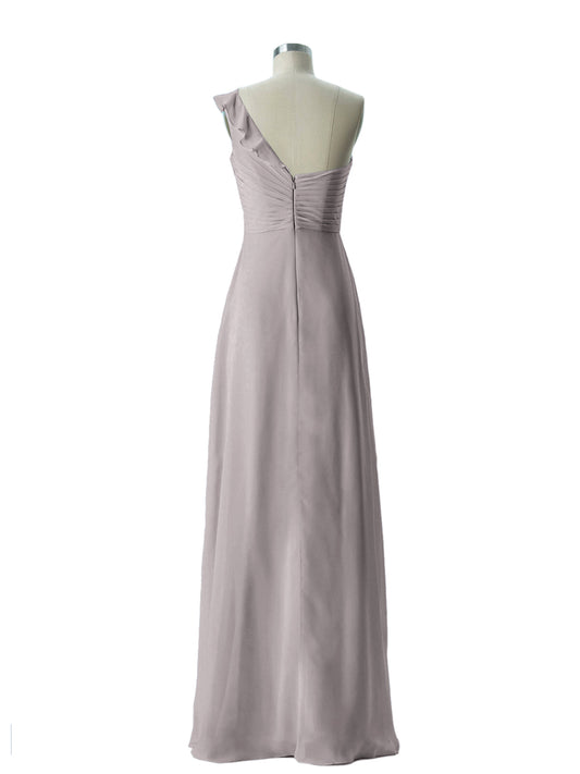 Babaroni EdenEden Un Volante Hombro Largo Vestido De Dama De Honor Plata