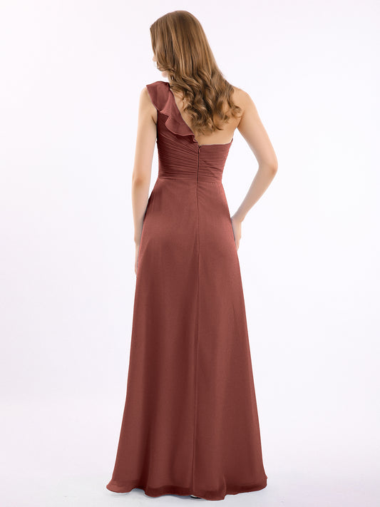 Babaroni EdenEden Un Volante Hombro Largo Vestido De Dama De Honor Terracota