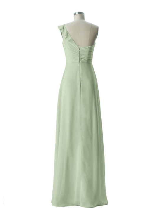 Babaroni EdenEden Un Volante Hombro Largo Vestido De Dama De Honor Salvia