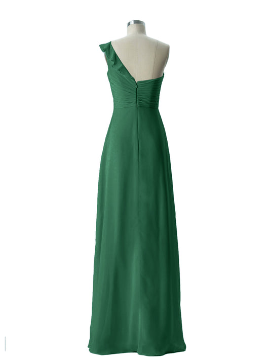 Babaroni EdenEden Un Volante Hombro Largo Vestido De Dama De Honor Verde Oscuro