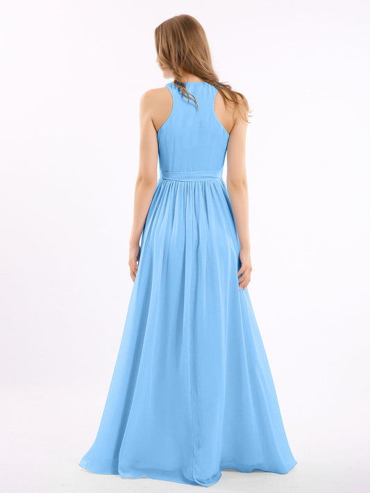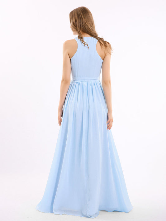 Babaroni AmeliaEl vestido de chiffon con escote en V profundo y lazo de sash Azul Cielo