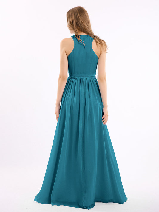 Babaroni AmeliaEl vestido de chiffon con escote en V profundo y lazo de sash Azul Océano