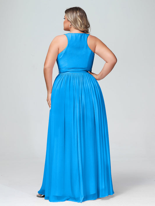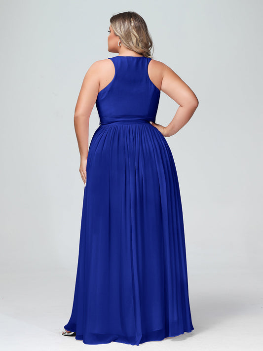 Babaroni AmeliaEl vestido de chiffon con escote en V profundo y lazo de sash Azul Royal Tallas Grandes