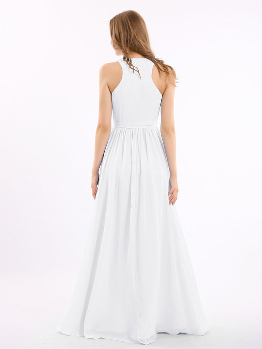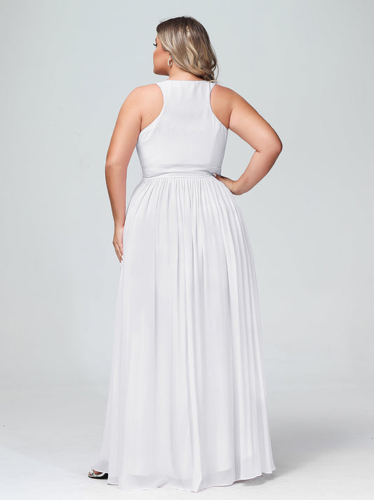 Babaroni AmeliaEl vestido de chiffon con escote en V profundo y lazo de sash Blanco Tallas Grandes