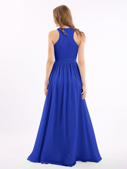 Babaroni AmeliaEl vestido de chiffon con escote en V profundo y lazo de sash Azul Royal