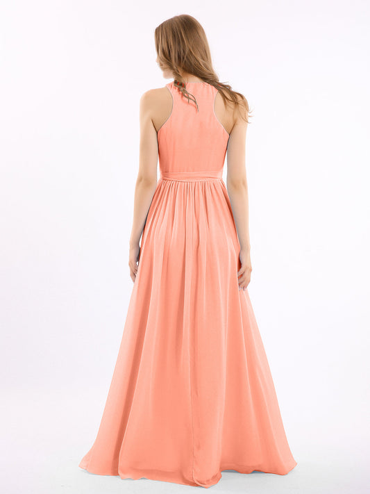 Babaroni AmeliaEl vestido de chiffon con escote en V profundo y lazo de sash Atardecer