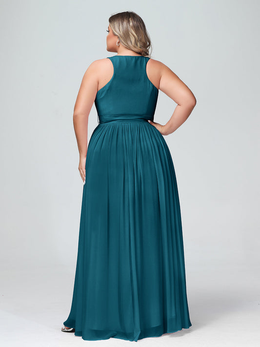 Babaroni AmeliaEl vestido de chiffon con escote en V profundo y lazo de sash Azul Océano Tallas Grandes