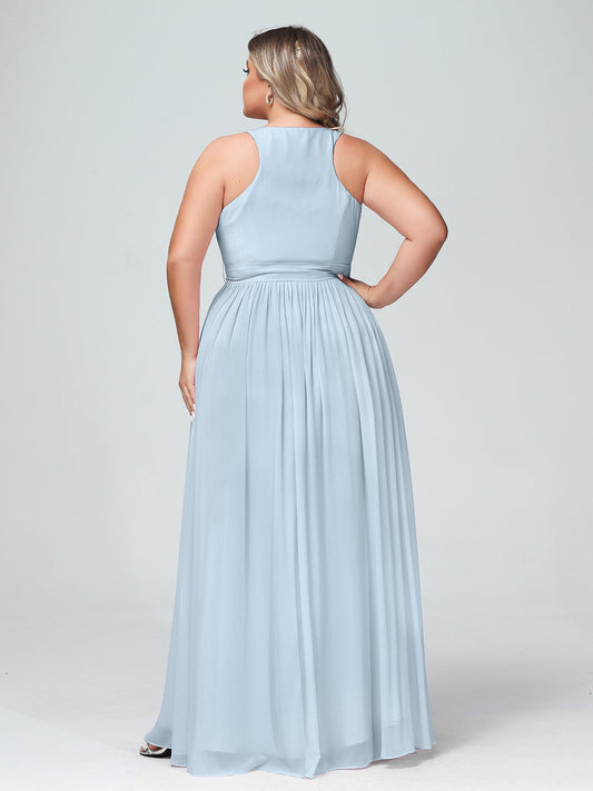 Babaroni AmeliaEl vestido de chiffon con escote en V profundo y lazo de sash Azul Cielo Tallas Grandes