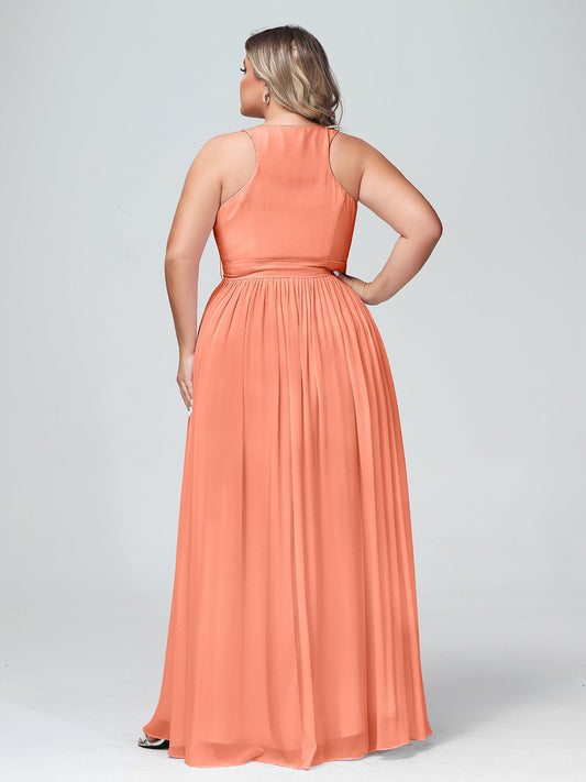 Babaroni AmeliaEl vestido de chiffon con escote en V profundo y lazo de sash Atardecer Tallas Grandes
