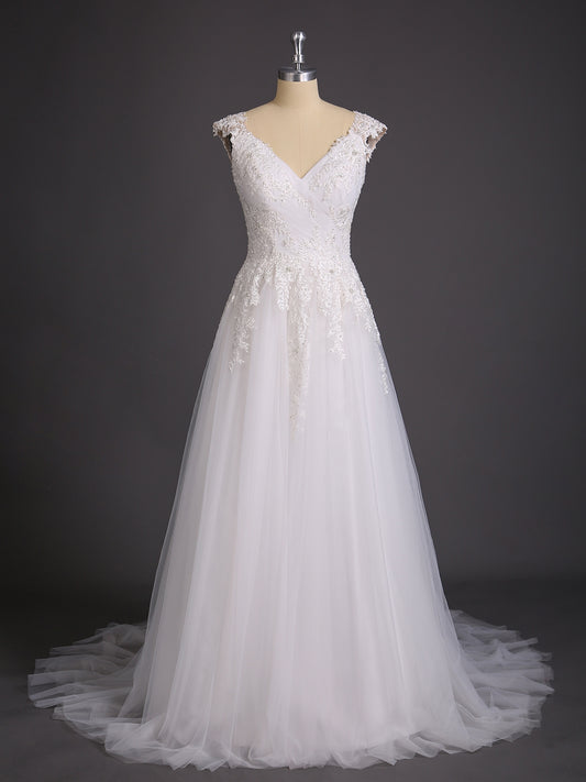 Babaroni EiraEira Espalda Abierta Tul Corte De Novia Con Mangas De La Tapa Marfil Tallas Grandes