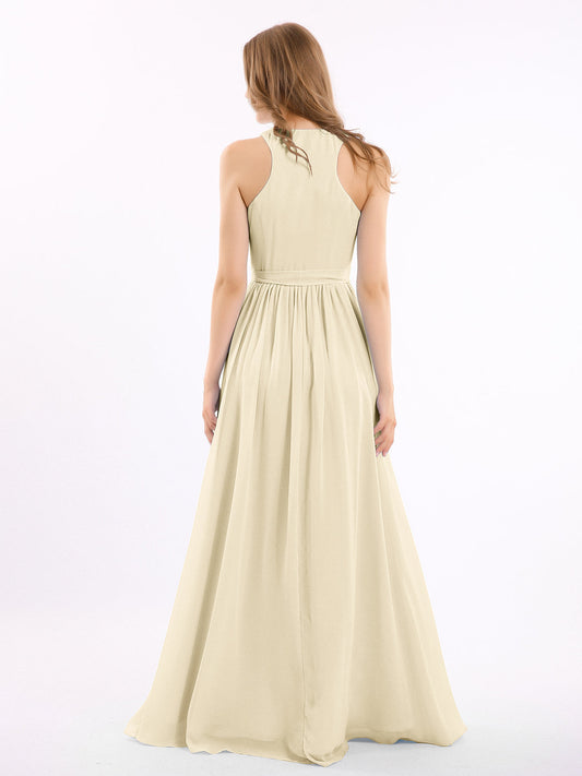 Babaroni AmeliaEl vestido de chiffon con escote en V profundo y lazo de sash Champán