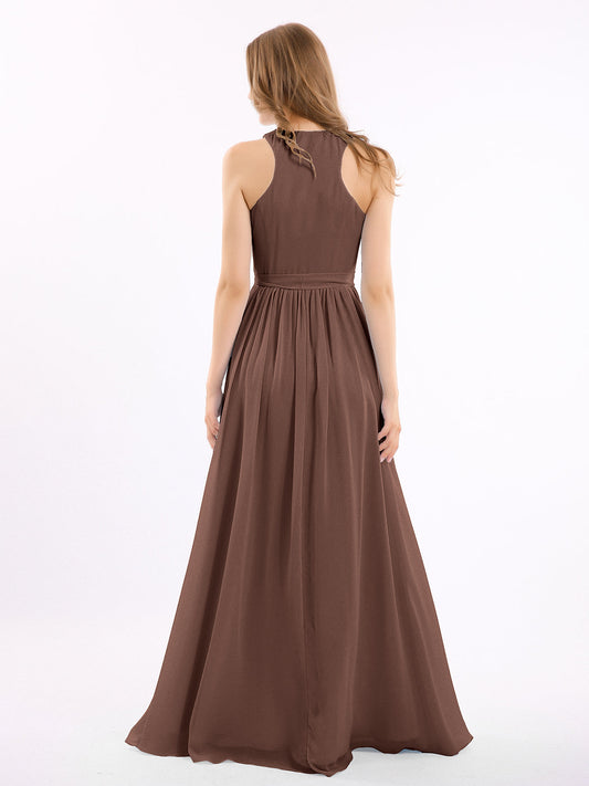 Babaroni AmeliaEl vestido de chiffon con escote en V profundo y lazo de sash Chocolate