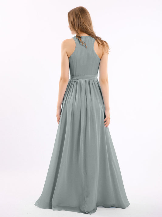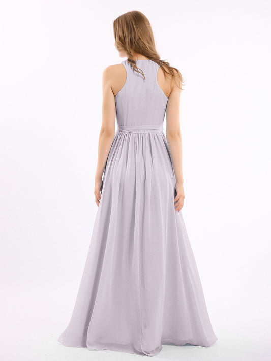 Babaroni AmeliaEl vestido de chiffon con escote en V profundo y lazo de sash Crepúsculo