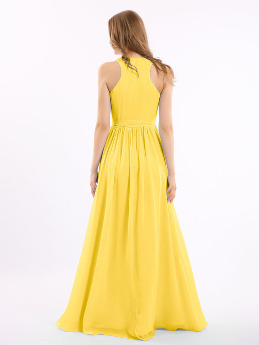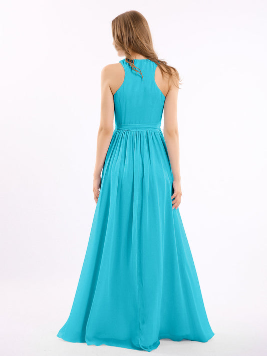 Babaroni AmeliaEl vestido de chiffon con escote en V profundo y lazo de sash Esmeralda