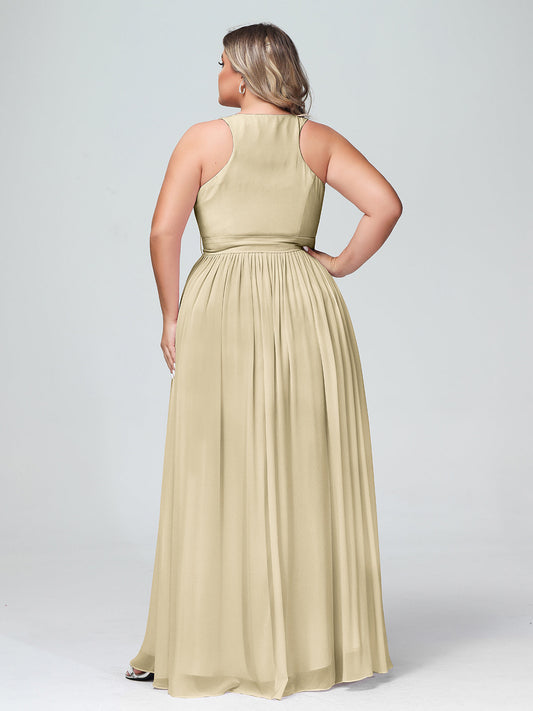 Babaroni AmeliaEl vestido de chiffon con escote en V profundo y lazo de sash Champán Tallas Grandes