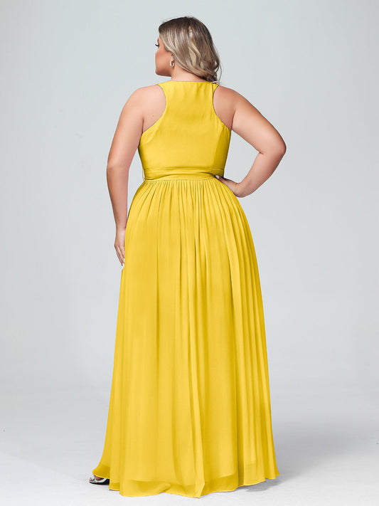 Babaroni AmeliaEl vestido de chiffon con escote en V profundo y lazo de sash Caléndula Tallas Grandes