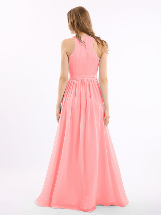 Babaroni AmeliaEl vestido de chiffon con escote en V profundo y lazo de sash Coral