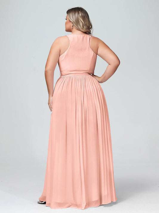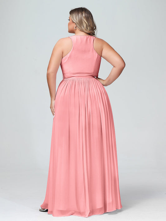 Babaroni AmeliaEl vestido de chiffon con escote en V profundo y lazo de sash Coral Tallas Grandes