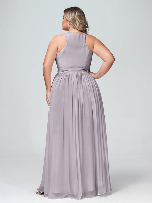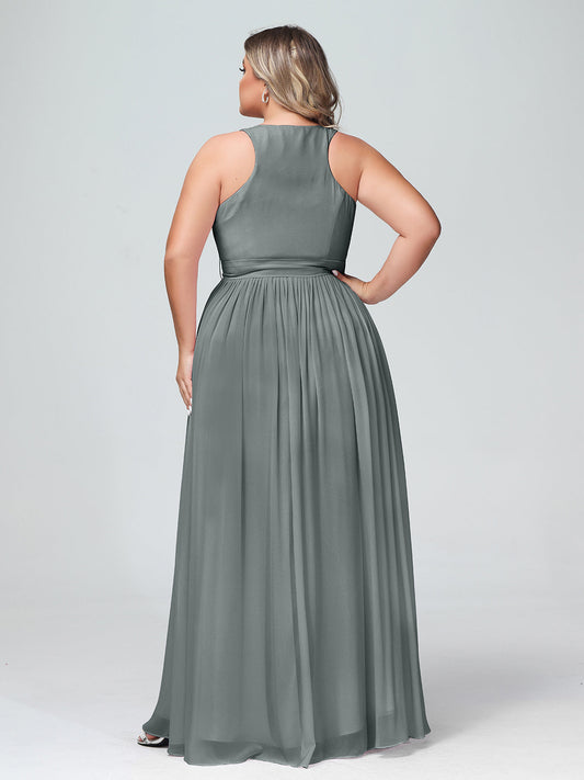 Babaroni AmeliaEl vestido de chiffon con escote en V profundo y lazo de sash Crepúsculo Tallas Grandes