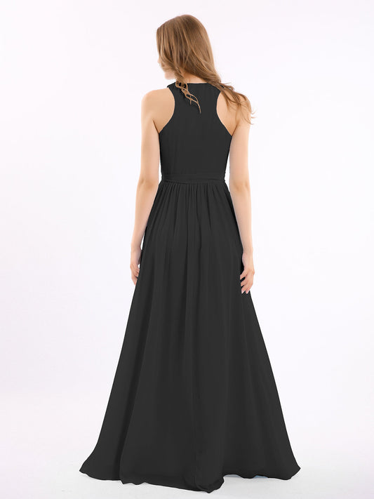 Babaroni AmeliaEl vestido de chiffon con escote en V profundo y lazo de sash Negro Tallas Grandes
