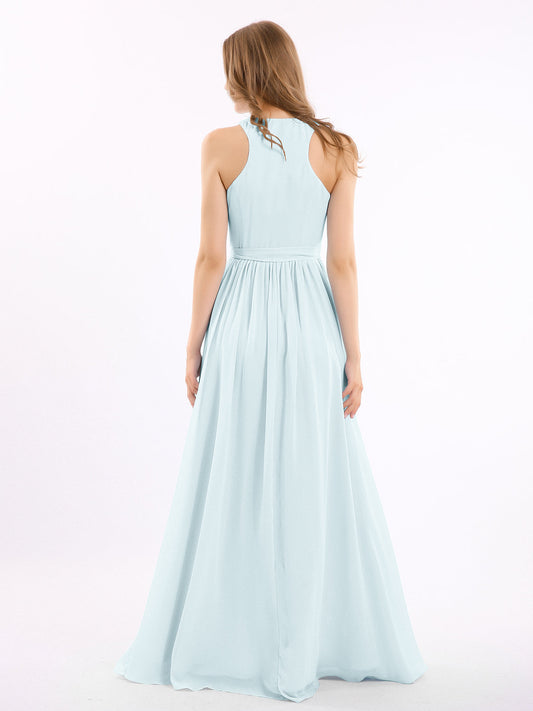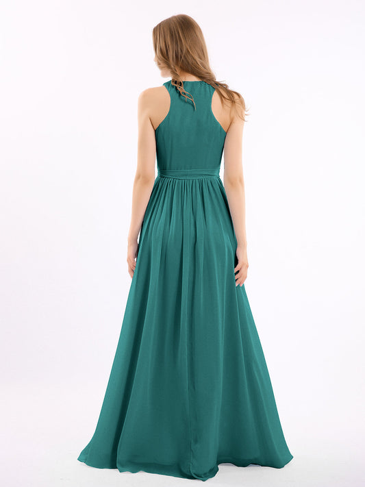 Babaroni AmeliaEl vestido de chiffon con escote en V profundo y lazo de sash Pavo real
