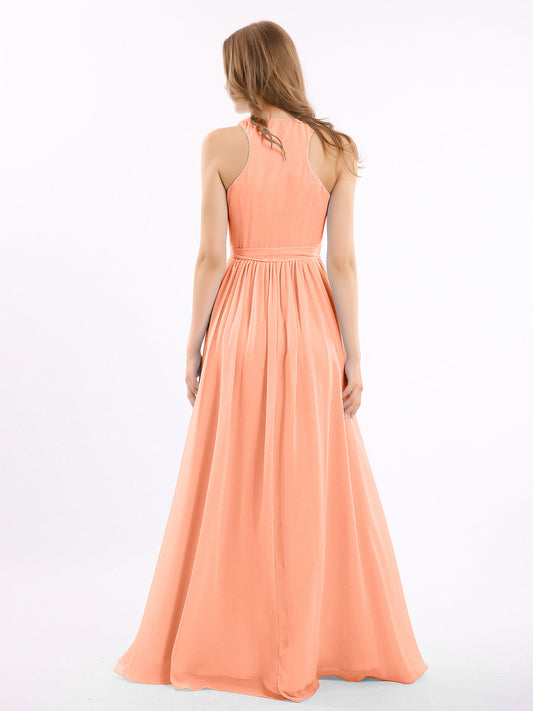 Babaroni AmeliaEl vestido de chiffon con escote en V profundo y lazo de sash Papaya
