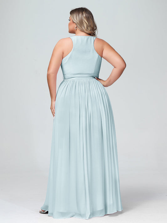 Babaroni AmeliaEl vestido de chiffon con escote en V profundo y lazo de sash Niebla Tallas Grandes