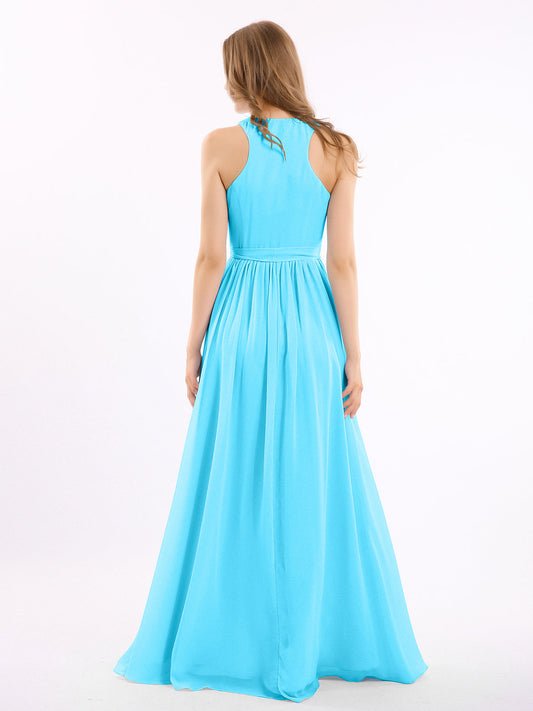 Babaroni AmeliaEl vestido de chiffon con escote en V profundo y lazo de sash Piscina