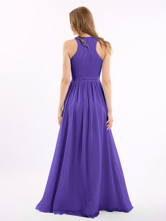 Babaroni AmeliaEl vestido de chiffon con escote en V profundo y lazo de sash Orquídea