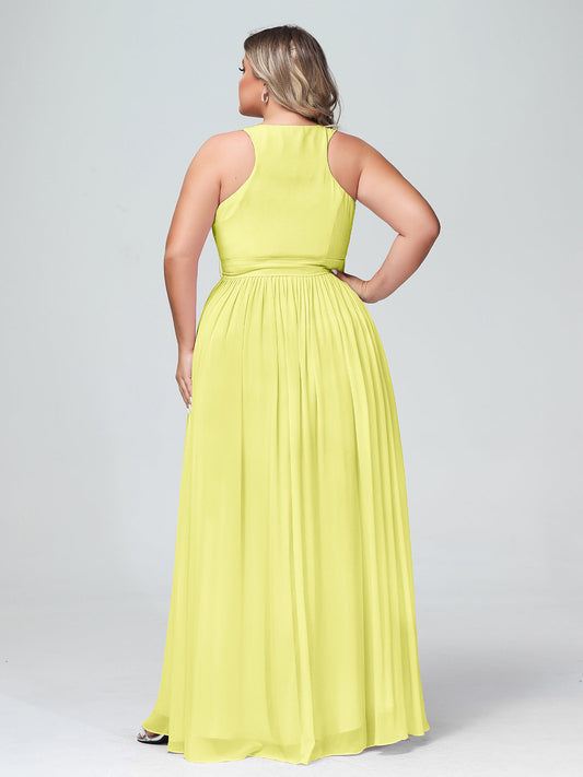 Babaroni AmeliaEl vestido de chiffon con escote en V profundo y lazo de sash Regencia Tallas Grandes