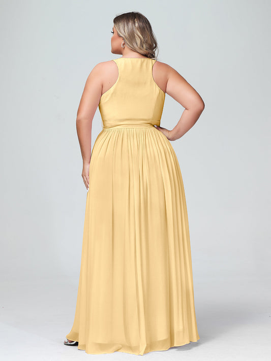 Babaroni AmeliaEl vestido de chiffon con escote en V profundo y lazo de sash Oro Tallas Grandes