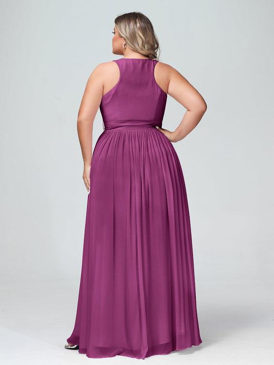 Babaroni AmeliaEl vestido de chiffon con escote en V profundo y lazo de sash Orquídea Tallas Grandes