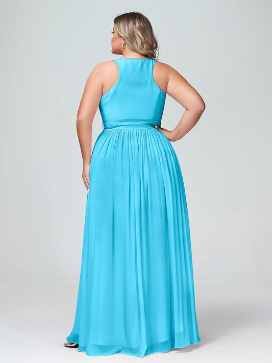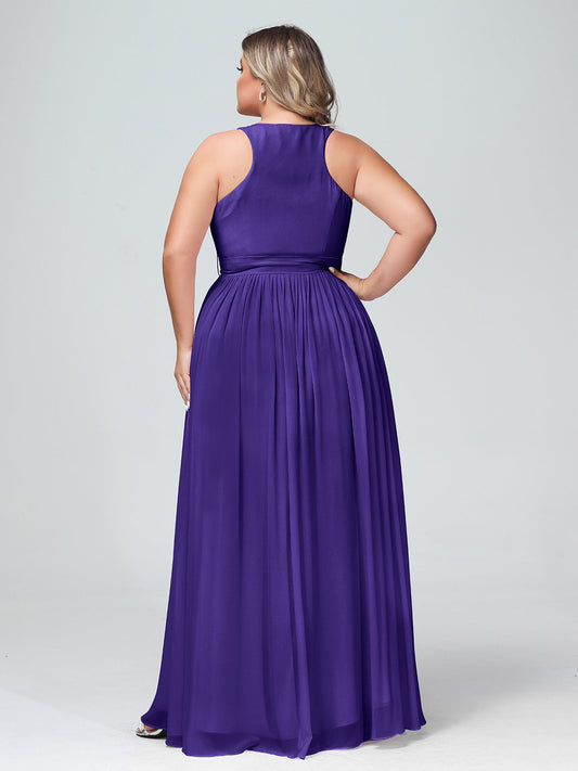 Babaroni AmeliaEl vestido de chiffon con escote en V profundo y lazo de sash Piscina Tallas Grandes