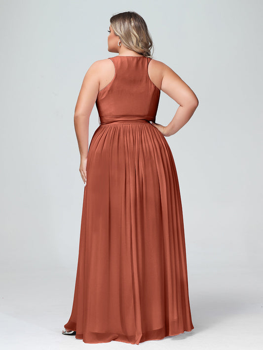 Babaroni AmeliaEl vestido de chiffon con escote en V profundo y lazo de sash Óxido Tallas Grandes