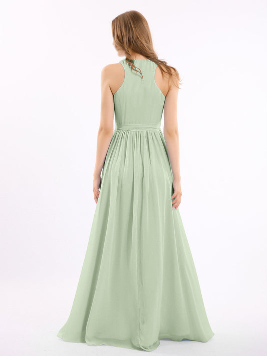 Babaroni AmeliaEl vestido de chiffon con escote en V profundo y lazo de sash Salvia