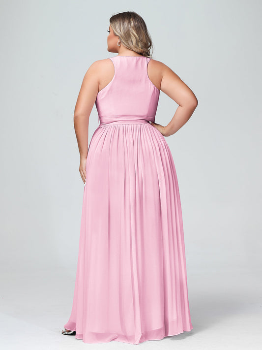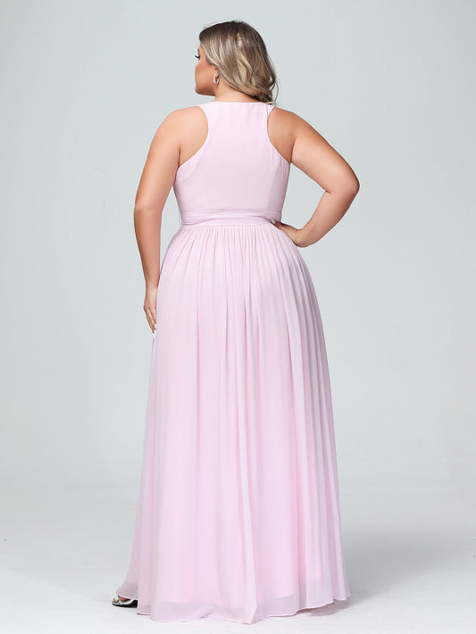 Babaroni AmeliaEl vestido de chiffon con escote en V profundo y lazo de sash Rosa Claro Tallas Grandes