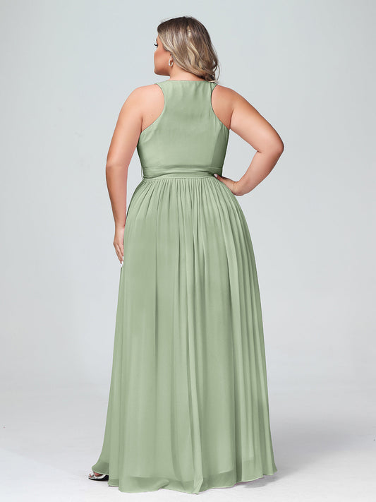 Babaroni AmeliaEl vestido de chiffon con escote en V profundo y lazo de sash Salvia polvorienta Tallas Grandes