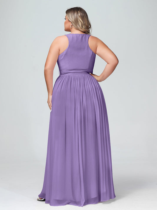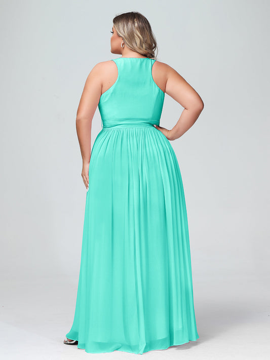 Babaroni AmeliaEl vestido de chiffon con escote en V profundo y lazo de sash Tahití Tallas Grandes