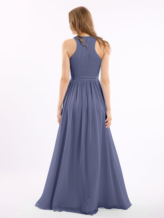Babaroni AmeliaEl vestido de chiffon con escote en V profundo y lazo de sash Tormenta