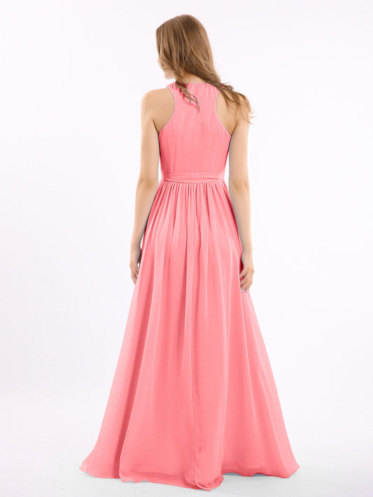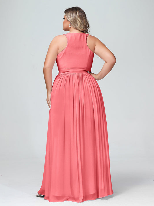 Babaroni AmeliaEl vestido de chiffon con escote en V profundo y lazo de sash Sandía Tallas Grandes