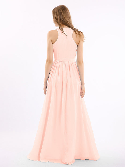 Babaroni AmeliaEl vestido de chiffon con escote en V profundo y lazo de sash Rosa Claro