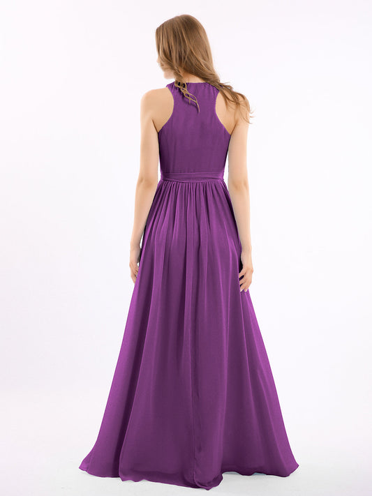 Babaroni AmeliaEl vestido de chiffon con escote en V profundo y lazo de sash Uva